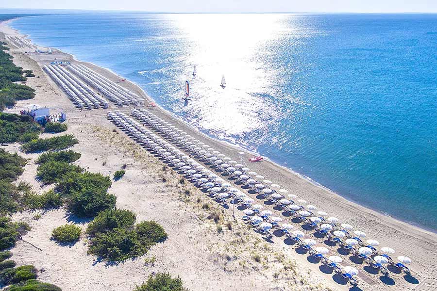 SPIAGGIA: Il Valentino Resort si trova all’interno del complesso Ethra Reserve, immerso nel verde della Riserva naturale di Stornara. La spiaggia è una distesa di sabbia chiara lunga più di 5 chilometri, orlata dalle dune e dalla macchia mediterranea. In mare il fondale scende dolcemente, l’ideale per i giochi e bagni dei bambini. Nella nostra spiaggia riservata hai il tuo ombrellone assegnato per l’intero soggiorno con un lettino e una sdraio e puoi provare tantissimi sport e attività, con le escursioni in barca e gommone, canoe, pedalò, vela, windsurf, paddle surf e il wing sup. Per arrivare al mare hai a disposizione la navetta gratuita.
