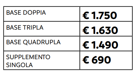• Tutto quanto non espressamente indicato alla voce “La quota include”