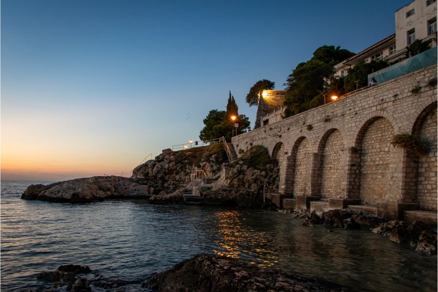 Oltre al palazzo, Spalato rivela un centro storico elegante e solare: la Riva, il suo iconico lungomare, è un punto d’incontro animato da caffè, palme e viste spettacolari sul porto. Le piazze storiche, le logge veneziane e le strade strette del quartiere Veli Varoš aggiungono ulteriore atmosfera, tra scorci romantici e dettagli architettonici ricchi di fascino.