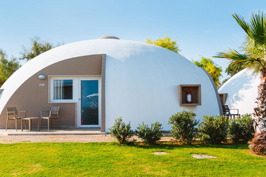 Camere: Il nostro resort dispone di 283 camere suddivise in tre tipologie: suite Calotta, camere Calotta, camere Orlo. Ogni camera è arredata in stile contemporaneo, con SAT-TV wide screen, mini-bar, telefono, cassaforte, connessione internet gratuita e stanza da bagno con doccia e asciugacapelli. Le Camere Calotta, dalla forma a cupola, sono confortevoli e spaziose, con superficie di circa 22 mq, e offrono una rilassante vista sul giardino, sulla piscina interna o sul mare, ideali per coppie e per coppie con bambino.
