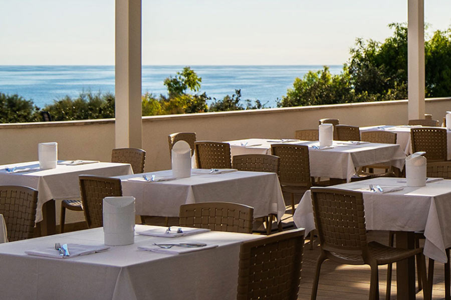 Ristoranti: Oltre che per le sue meraviglie naturali, la Puglia è famosa anche per la sua cucina tipica. E una vacanza, per essere d’eccellenza, deve proporre anche il gusto di piatti innovativi, di ricette della tradizione, di colazioni sane e variegate, di drink e cocktail preparati con maestria. Ed ecco perché nei ristoranti e nei bar, posizionati nelle zone più suggestive di Torre Cintola, potrai sempre soddisfare la tua voglia di qualcosa di delizioso o il desiderio di concederti un drink al tramonto. Tutti i ristoranti di Torre Cintola sono caratterizzati da spazi ampi e luminosi. È qui, a due passi dal mare e dalle piscine, che potrai assaporare i piatti della cucina pugliese e italiana, e dove potrai cominciare la tua giornata con una sfiziosa e variegata prima colazione. Ristorante Sfera - Al piano terra della cupola più ampia c’è il ristorante Sfera, il grande spazio luminoso e circondato da vetrate, in cui assaggiare le prelibatezze degli chef che danno vita ai piatti della tradizione pugliese e alle ricette della cucina italiana. Solo durante la stagione estiva, a cena sono previste serate a tema con show cooking in esterna e musica live di accompagnamento. Ristorante Globo - Nella cupola minore si trova il ristorante Globo, spazio ideale per famiglie e bambini. Qui, i più piccoli ricevono un'accoglienza personalizzata con menù dedicati e un'area attrezzata. Le ampie vetrate collegano l'interno con l'esterno e creano un'atmosfera accogliente e luminosa. Solo durante la stagione estiva, per cena sono previste serate a tema con show cooking in esterno e musica live di accompagnamento. Ristorante BLU Mediterraneo - Sul primo piano della cupola maggiore si trova il Blu Ristorante Mediterraneo, con menù degustazione di quattro portate e una cucina completamente a vista. Il menù giornaliero presenta una reinterpretazione moderna dei piatti della cucina mediterranea. Questo servizio, su prenotazione, è incluso nella formula di mezza pensione o pensione completa, come sostituzione della cena a buffet. La Dunetta Beach Restaurant - A due passi dal mare, La Dunetta Beach Restaurant vi aspetta a pranzo per un light lunch con una proposta gastronomica che varia da insalate e pucce a primi, secondi e piatti alla griglia. Questo servizio è incluso nel pacchetto premium o suite come sostituzione del pranzo a buffet, oppure è un servizio extra per tutti coloro in formula B&B o mezza pensione. Il ristorante vi aspetta anche a cena con un menù alla carta a base di sushi, carpacci e tartare di pesce. Questo servizio, su prenotazione, è incluso solo nel pacchetto premium o suite come sostituzione della cena, altrimenti è un servizio extra.