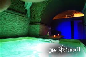 Hotel Centro Wellness Puglia: Gli Ospiti del Palace Hotel San Michele potranno usufruire di un dotatissimo centro wellness, messo a loro disposizione dall’Hotel Relais dei Normanni a Monte Sant’Angelo, in Puglia, contiguo alla nostra struttura ed appartenente al medesimo gruppo alberghiero, all’interno del quale è possibile recuperare equilibrio interiore ed energia fisica lasciandosi andare ad un assoluto relax. Abbandonandosi completamente al fluire dell’acqua e rispondendo agli stimoli cromatici, ci si lascia vincere da un profondo piacere esaltato da massaggi e trattamenti affidati a specializzati professionisti del benessere. L'utilizzo del centro Wellness permette la fruizione dei seguenti servizi: piscina coperta a 28° con idromassaggio, geyser e massaggi cervicali; sauna mediterranea; docce emozionali con cromoterapia; zona relax con chaise longue; mini palestra; mini palestra, percorso vascolare; bagno turco con cromoterapia; sauna finlandese; vasca idromassaggio a 32°; tisaneria. Orario di apertura: dalle 16:00 alle 19:00. In occasione di ponti e festività sono previste anche sessioni mattutine. Obbligatorio l'ingresso con accappatoio, cuffia e ciabatte in plastica; non sarà consentito l'ingresso con telo mare.
