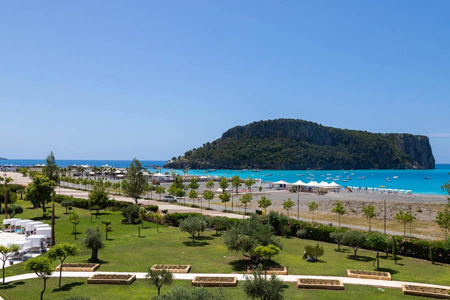 Spiaggia: Un tuffo nel blu A pochi passi dalla camera, l’ampia spiaggia privata e attrezzata accoglie chi ama il mare autentico. L’acqua, limpida e trasparente, Bandiera Blu dal 2016, riflette la luce sull’Isola di Dino, che si può raggiungere in canoa. Ogni camera dispone di ombrellone gratuito, con la possibilità di riservare, a pagamento, le prime file per un comfort ancora maggiore. Qui il tempo sembra rallentare, la brezza accarezza la pelle e ogni passo sui ciottoli diventa un piccolo rito di vacanza. Per goderti ogni momento in pieno comfort, puoi portare con te le scarpette da mare o trovarle nella Boutique dell’hotel. Sulla spiaggia ti attende il Beach Bar, ideale per una pausa rilassante tra un tuffo e l’altro con lo sguardo rivolto al mare e all’orizzonte di Praia.