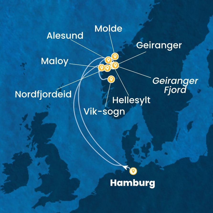Crociera ai Fiordi: 9 Notti in nord Europa! Il 10/06 vola da Roma e salpa da Amburgo con COSTA FAVOLOSA, da 1.400€ a persona. Tasse, assicurazione e quote di servizio incluse!