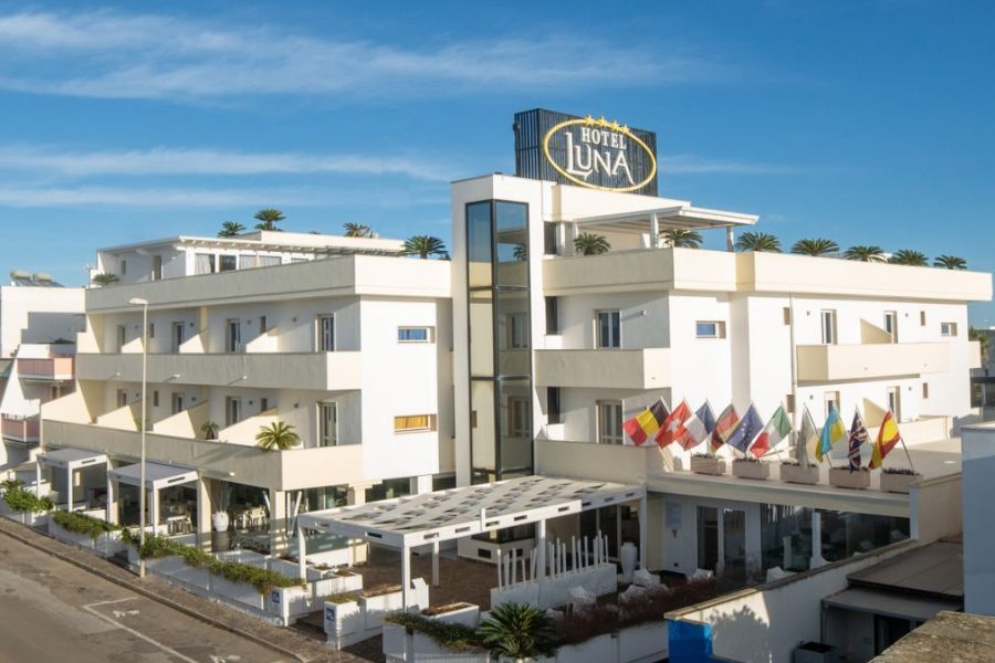 L’Hotel Luna Lido, aperto tutto l’anno, offre una meravigliosa vista sul mar Ionio antistante, e si colloca nei pressi del noto porto turistico dove iniziano le bellissime spiagge Maldive del Salento di sabbia bianca finissima e fondali marini bassi, ideali per grandi e piccini.