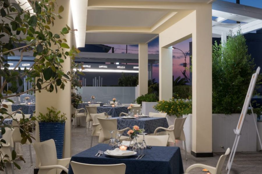 Ristorazione: Il ristorante, aperto tutto l’anno, propone menù fissi e a la carte che esaltano i profumi decisi e le prelibatezze della cucina tipica salentina locale, ma anche con quelli più raffinati e ricercati della cucina internazionale. Lo staff dell’Hotel Luna e della sala vi accoglierà con un caloroso benvenuto al vostro arrivo, e sarà sempre pronto a soddisfare la curiosità di chi vuole scoprire le novità di una cucina di moderna raffinatezza, ma sempre legata alle tradizioni del territorio. Non mancano prodotti senza glutine e senza lattosio per chi ha particolari esigenze dietetiche, oltre alla possibilità di richiedere piatti di cucina vegetariana. La sala è adatta a valorizzare ogni tipo di ricorrenza: piccole cerimonie, eventi, anniversari, matrimoni, cene di lavoro. Il Ristorante Luna dispone anche di una terrazza esterna per una cena a lume di candela nelle serate calde d’estate. Nel periodo estivo le cene sono sempre allietate da musica dal vivo e piano bar. La colazione è servita dalle 07:30 alle 10:00. Il pranzo è servito dalle 12:30 alle 13:30 (Pranzo Baby 11:30 – 12:30). La cena è servita dalle 19:30 alle 21:00 (Cena Baby 18:30 – 19:30).