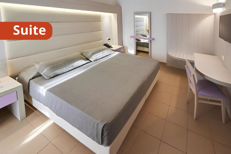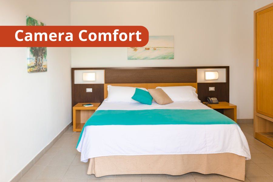 Sistemazione: COMFORT unico ambiente da 2 a 6 posti letto. Eleganti ed accoglienti, tutte con aria condizionata, telefono, TV LCD, frigobar (attrezzato su richiesta), cassetta di sicurezza, balcone o veranda attrezzata, servizi con doccia e asciugacapelli. SUITE (2+2 e 2+3) finemente arredate, composte da due camere (soggiorno con 2 divani letto e camera matrimoniale) e servizio con doccia ed asciugacapelli, tutte con aria condizionata, telefono, TV LCD, frigobar (attrezzato su richiesta), cassetta di sicurezza, balcone o veranda attrezzata.