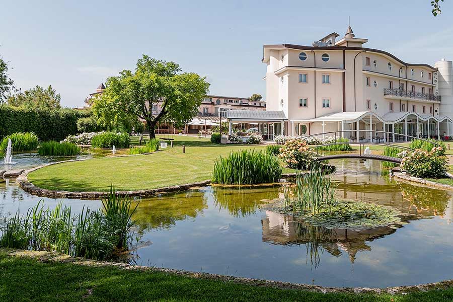 PARCO: È lo scenario che si adatta a tutti i vostri desideri di piacere. Gli spazi esterni, disegnati da grandi e bellissimi laghetti naturali contornati da una varietà di oltre mille tipologie di piante e fiori regaleranno un emozione avvolgente da renderla indimenticabile.