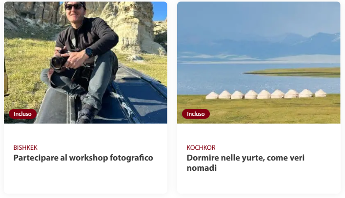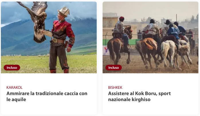 Prima colazione al campo e pranzo libero. Partenza con mezzi privati verso Karakol percorrendo la pittoresca costa meridionale del lago Issyk-Kul, con viste spettacolari sull'acqua e sulle montagne del Tien Shan. Sosta presso una famiglia nomade per comprendere la storia e la tradizione dei berkutchi, i famosi cacciatori con le aquile, una tradizione millenaria dei popoli kirghizi, che ha permesso ai nomadi di nutrirsi per millenni. Al termine, proseguimento verso il fantastico Canyon Skazka (Fairy Tale). Dopo circa un’ora di viaggio in direzione delle montagne si raggiunge la valle e l’area geologica protetta di Jeti-Oguz, il cui nome significa "sette tori", riferendosi alle spettacolari formazioni rocciose di arenaria rossa che si estendono per circa 35 km, un monumento naturale unico. La leggenda narra che, al termine di un banchetto, un marito tradito uccise la moglie: il suo sangue travolse sette animali, che si trasformarono in rocce rosse. Nelle vicinanze si trova un’altra formazione rocciosa, il Razbitoe Serdce, che significa “cuore spezzato”. La roccia ricorda realmente un cuore spezzato, ma esiste anche una leggende che ne spiega l’origine: due uomini innamorati della stessa donna, si scontrano furiosamente per lei. La sanguinosa lotta terminò tragicamente con la morte di entrambi, provocando la frattura della roccia spezzata in due, così come il cuore della fanciulla. In fondo alla valle di Jeti-Oguz, nella parte più alta e remota, si erge il Picco Eltsin, un'imponente cima che supera i cinquemila metri e fa parte della catena montuosa Terskey Ala-Too. Proseguimento per Karakol e, all’arrivo, giro panoramico della città. A seguire, partenza a bordo di auto UAZ 4x4 in direzione della spettacolare valle di Altyn Arashan, immersa tra montagne maestose e circondata da pascoli incontaminati. Sistemazione presso il campo di yurte, cena e pernottamento.