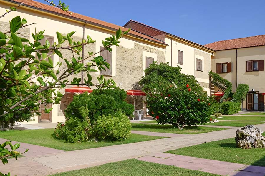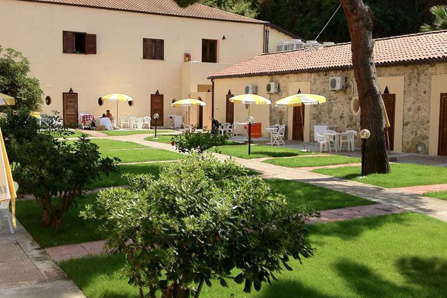 Sistemazioni: La struttura dispone di camere dislocate su due livelli, in caratteristiche strutture immerse nel rigoglioso giardino. Arredate in stile impero, sono tutte dotate di servizi privati con doccia e phon, aria condizionata, tv color, telefono, mini frigo e cassaforte. Si dividono in Standard doppie e triple, quadruple composte da un unico ambiente con 3°/4° letto a castello o letti piani; alcune sono ubicate a piano terra con patio esterno attrezzato vista giardino, ed altre al 1° piano con finestra; Doppie superior vista mare, con ampia vista panoramica nella Baia di Sant'Irene, tutte situate al 1° piano con finestra; Bicamere composte da due camere da letto comunicanti con 2 bagni, ubicate a piano terra, vista giardino con patio esterno attrezzato; Camere Quadruple soppalcate, composte da una camera da letto e 3°/4° letto su soppalco basso raggiungibile con una scaletta in legno, situate a piano terra con patio esterno attrezzato; Bungalow 3 letti (unico ambiente con letto matrimoniale e 3° letto); Bungalow bicamera 4 letti (composti da una camera matrimoniale e una camera con 3°/4° letto a castello o letti piani). I Bungalow dispongono di un arredamento confortevole ma più semplice ed essenziale rispetto alle camere, sono tutti ubicati a piano terra con patio esterno attrezzato.
