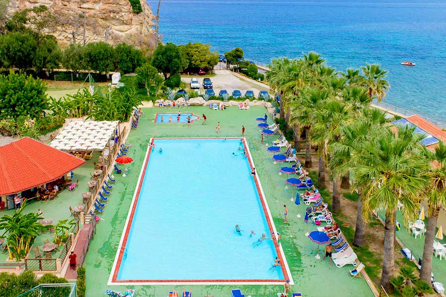 Servizi e Attrezzature: Reception 24h, bar, ristorante climatizzato, piscina per adulti con adiacente piscina per i bambini (ombrelloni e lettini fino ad esaurimento), zona palco per spettacoli serali, wi-fi gratuito nelle aree comuni (zona bar e piscina, eccetto zona hall), campo polivalente (tennis/calcetto), possibilità di parcheggio interno non custodito e fino ad esaurimento posti (previsto supplemento di 30€ a settimana per auto, da regolare in loco).