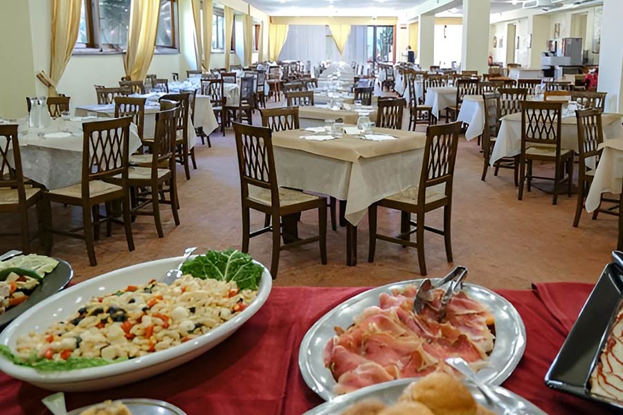 Ristorazione: Trattamento di Pensione completa con servizio a buffet (acqua, vino e soft drink inclusi ai pasti), i tavoli saranno assegnati per nucleo familiare.