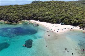 Nydri: spiaggia stretta ma estesa in lunghezza, con ciottoli e piccoli massi bagnati dalle acque limpide e calme con una stupenda vista sulle isole minori ovvero Maduri, Sparti e Skorpios.