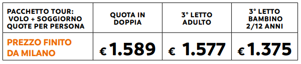- I voli inclusi in questa offerta sono soggetti a modifiche di disponibilità e prezzi in tempo reale e possono dunque cambiare durante il processo di prenotazione. Nel caso in cui si verificasse questa eventualità, ti terremo sempre in aggiornamento durante la fase di prenotazione.