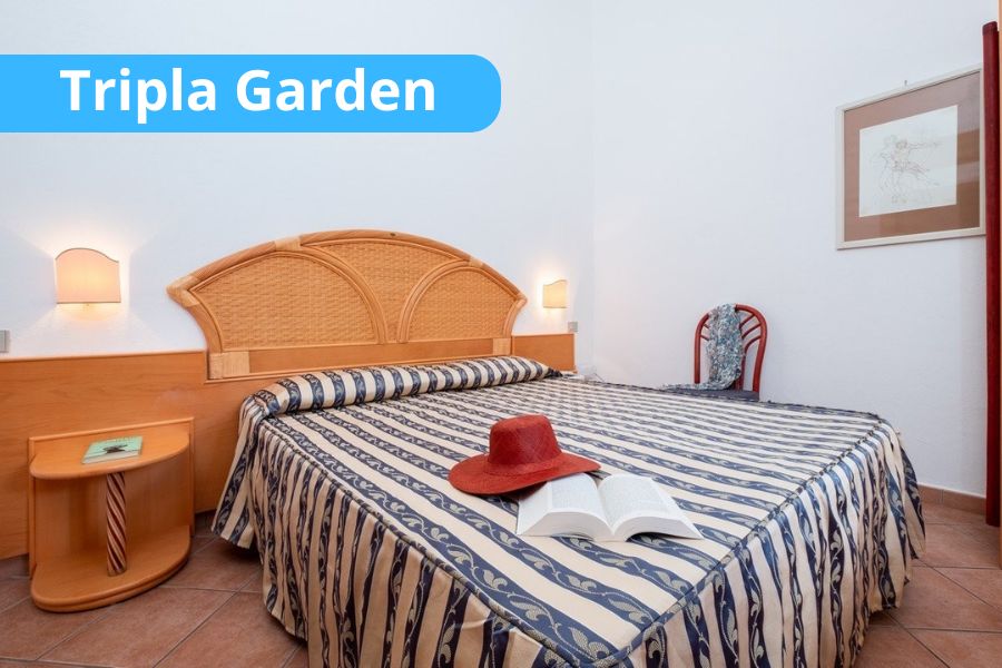 Camere: La struttura dispone di 134 camere sul modello delle villette a schiera dislocate all’interno del parco. Si suddividono in: Camere Garden, più spaziose e luminose; doppie, triple (composte da due vani, un bagno e unico ingresso), quadruple (composte da due vani, due bagni e unico ingresso). Camere Classic: con porta finestra; doppie e quadruple (composte da due camere doppie comunicanti). Tutte le camere sono dotate di servizi privati con doccia e asciugacapelli, patio, aria condizionata, TV, wi-fi, telefono e frigobar (riempimento su richiesta a pagamento). Doppia Garden: Ideale per chi viaggia in coppia o da solo, la camera è dotata di matrimoniale o due letti singoli secondo le vostre preferenze.