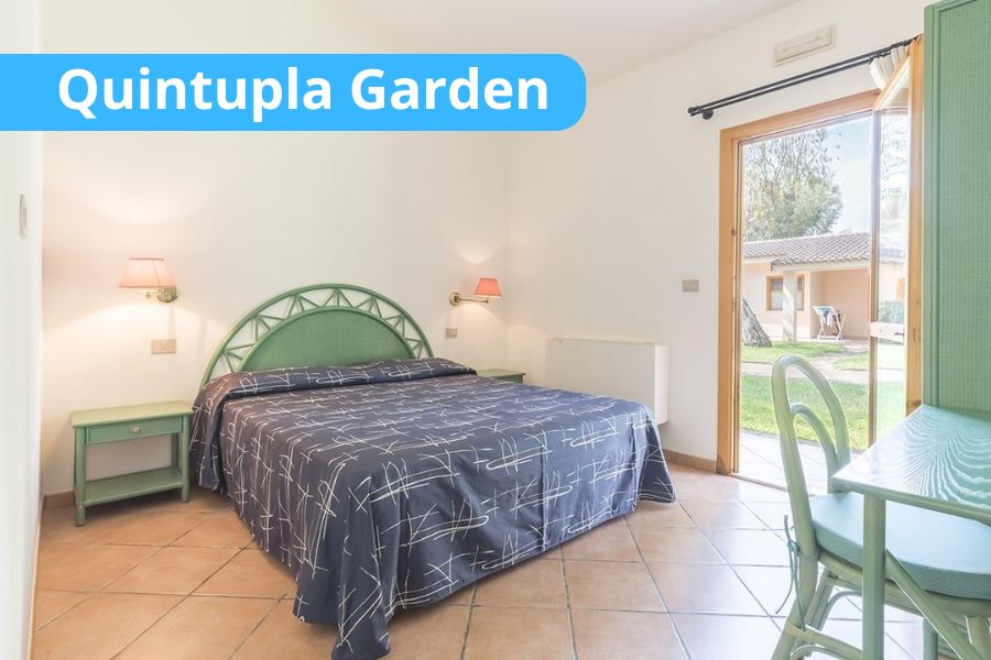 Le camere sul modello delle villette a schiera, dislocate all'interno del parco, sono confortevoli e di varia tipologia, tutte con patio e dotate di aria condizionata con regolazione autonoma, TV, Wi-fi, telefono e frigobar* (*riempimento a pagamento). Il bagno privato è dotato di doccia, asciugacapelli e set di prodotti da bagno. Doppia Garden (Uso Singola) Ideale per chi viaggia in coppia o da solo, la camera è dotata di matrimoniale o due letti singoli secondo le vostre preferenze. Le camere sul modello delle villette a schiera, dislocate all'interno del parco, sono confortevoli e di varia tipologia, tutte con patio e dotate di aria condizionata con regolazione autonoma, TV, Wi-fi, telefono e frigobar* (*riempimento a pagamento). Il bagno privato è dotato di doccia, asciugacapelli e set di prodotti da bagno. Doppia Garden (disabili): Ideale per chi viaggia in coppia o da solo, la camera è dotata di letto matrimoniale o due letti singoli secondo le vostre preferenze. Le camere sul modello delle villette a schiera, dislocate all'interno del parco, sono confortevoli e di varia tipologia, tutte con patio e dotate di aria condizionata con regolazione autonoma, TV, Wi-fi, telefono e frigobar*(*riempimento a pagamento). Il bagno privato, adatto a persone con disabilità, è dotato di doccia, asciugacapelli e set di prodotti da bagno. Tripla Garden: Ideale per tre persone o per una coppia con bambino, la camera è matrimoniale e con un letto singolo o secondo le vostre preferenze. Le camere, spaziose e luminose, sono tutte con patio e dotate di aria condizionata con regolazione autonoma, TV, Wi-Fi, telefono e frigobar* (*riempimento a pagamento). Il bagno privato è dotato di doccia, asciugacapelli e set di prodotti da bagno. Tripla Garden (Disabili). Ideale per tre persone o per una coppia con bambino, la camera è matrimoniale e con un letto singolo o secondo le vostre preferenze. Le camere, spaziose e luminose, sono tutte con patio e dotate di aria condizionata con regolazione autonoma, TV, Wi-Fi, telefono e frigobar* (*riempimento a pagamento). Il bagno privato, adatto a persone con disabilità, è dotato di doccia, asciugacapelli e set di prodotti da bagno. Quadrupla Garden: Ideale per quattro persone o per una famiglia con due bambini, la camera dispone di letto matrimoniale e due letti singoli o secondo le vostre preferenze. Le camere, spaziose e luminose, sono composte da due vani comunicanti, due bagni e un unico ingresso; tutte dispongono di un patio e sono dotate di aria condizionata con regolazione autonoma, TV, Wi-Fi, telefono e frigobar* (*riempimento a pagamento). Sono presenti due bagni privati con doccia, asciugacapelli e set di prodotti da bagno. Quadrupla Garden (Disabili): Ideale per quattro persone o per una famiglia con due bambini, la camera dispone di letto matrimoniale e due letti singoli o secondo le vostre preferenze. Le camere, spaziose e luminose, sono composte da due vani comunicanti, due bagni e un unico ingresso; tutte dispongono di un patio e sono dotate di aria condizionata con regolazione autonoma, TV, Wi-Fi, telefono e frigobar*( *riempimento a pagamento). Sono presenti due bagni privati con doccia, asciugacapelli e set di prodotti da bagno. Quintupla Garden: Ideale per cinque persone o per una famiglia con bambini, matrimoniale e con tre letti singoli o secondo le vostre preferenze.